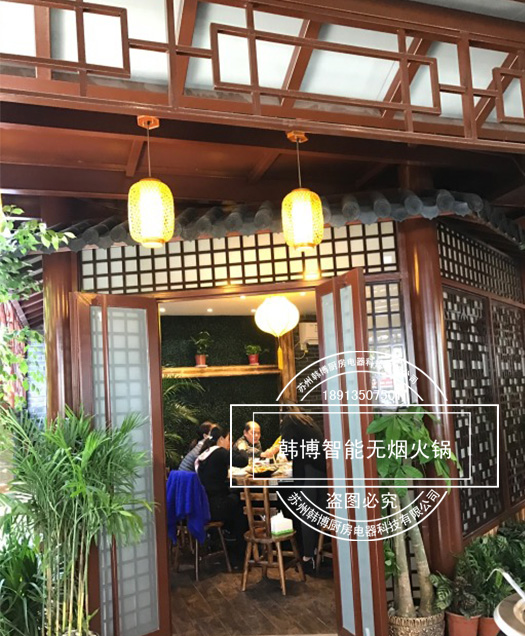 在這里吃火鍋不用擔心油煙味四處彌漫,因為揚之阿李火鍋店是一家智能無煙火鍋店,它選用了韓博智能無煙火鍋設備,吸油煙率高達99%,整個餐廳、包廂都無油煙味熏擾,只需盡情享受美景和享受佳肴。