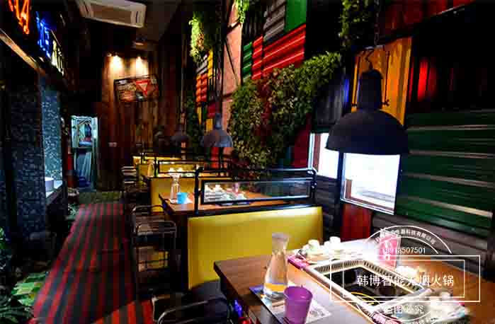 店內(nèi)采用許多年輕元素,時尚活力涂鴉,餐廳處處充滿趣味格調(diào)和時尚新鮮感,給顧客營造一種輕松愉快的環(huán)境。在這吃火鍋你不用擔心油煙味,因為它選用了韓博智能無煙火鍋設備,節(jié)能、安全、高檔、環(huán)保,油煙去除率高達99%。